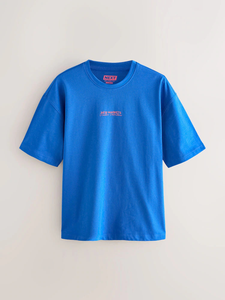 Blue Text Relaxed Fit Vintage Print Heavy Weight T-Shirt