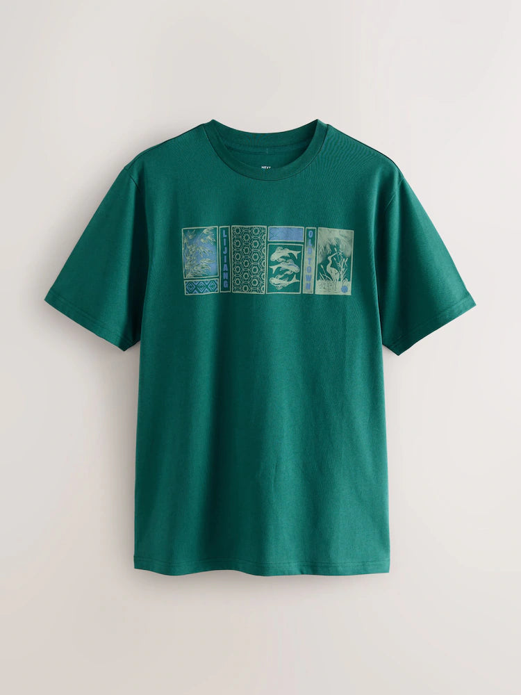 Green Regular Vintage Fit Graphic Print T-Shirt
