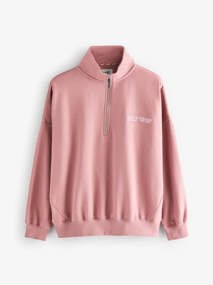 Layer up in style with this half zip sweatshirt by self. Designed in a relaxed fit with ribbed cuffs, a zip neck fastening and embroidered self. logo.
