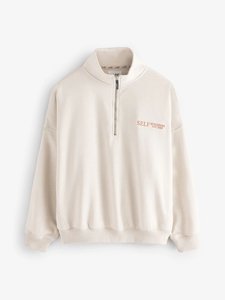 Layer up in style with this half zip sweatshirt by self. Designed in a relaxed fit with ribbed cuffs, a zip neck fastening and embroidered self. logo.