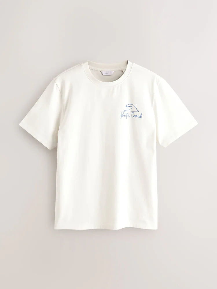 White Surf Regular VIntage Fit Graphic Print T-Shirt